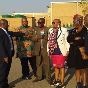 Bishop Mogwera (2nd from right) with the team and founder of Siphiwe Msimango Foudation at Phillip Kuschlick School for the disabled.