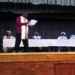 Bishop Mogwera(standing)Rev Mamorwa Gololo(far left) and other delegates praying for South Africa at Diepkloof hall.