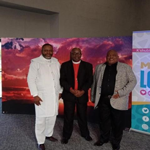 Bishop Tshabalala, Bishop Mogwera, and Bishop Hobbs are seen together on the set following the filming of an episode of AMABISHOP.
