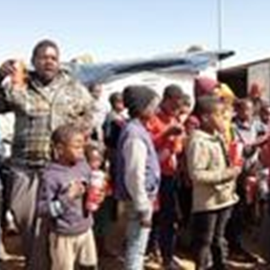 Bishop consoling children at the Nomzamo informal settlement in the aftermath of the tragic mass shooting.
